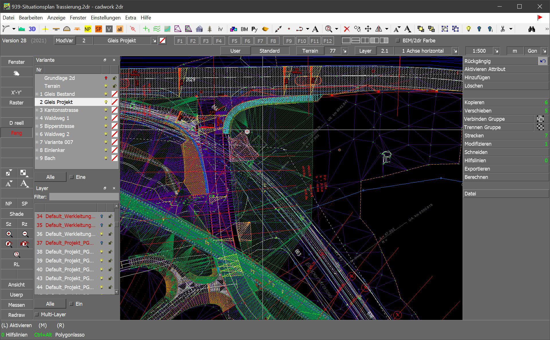 This project was also very interesting for us at cadwork, because in this renovation of the "Rütihof" level crossing, the road, work lines, earth movements and track all came together. So we were able to incorporate a lot of practical knowledge into the programme.