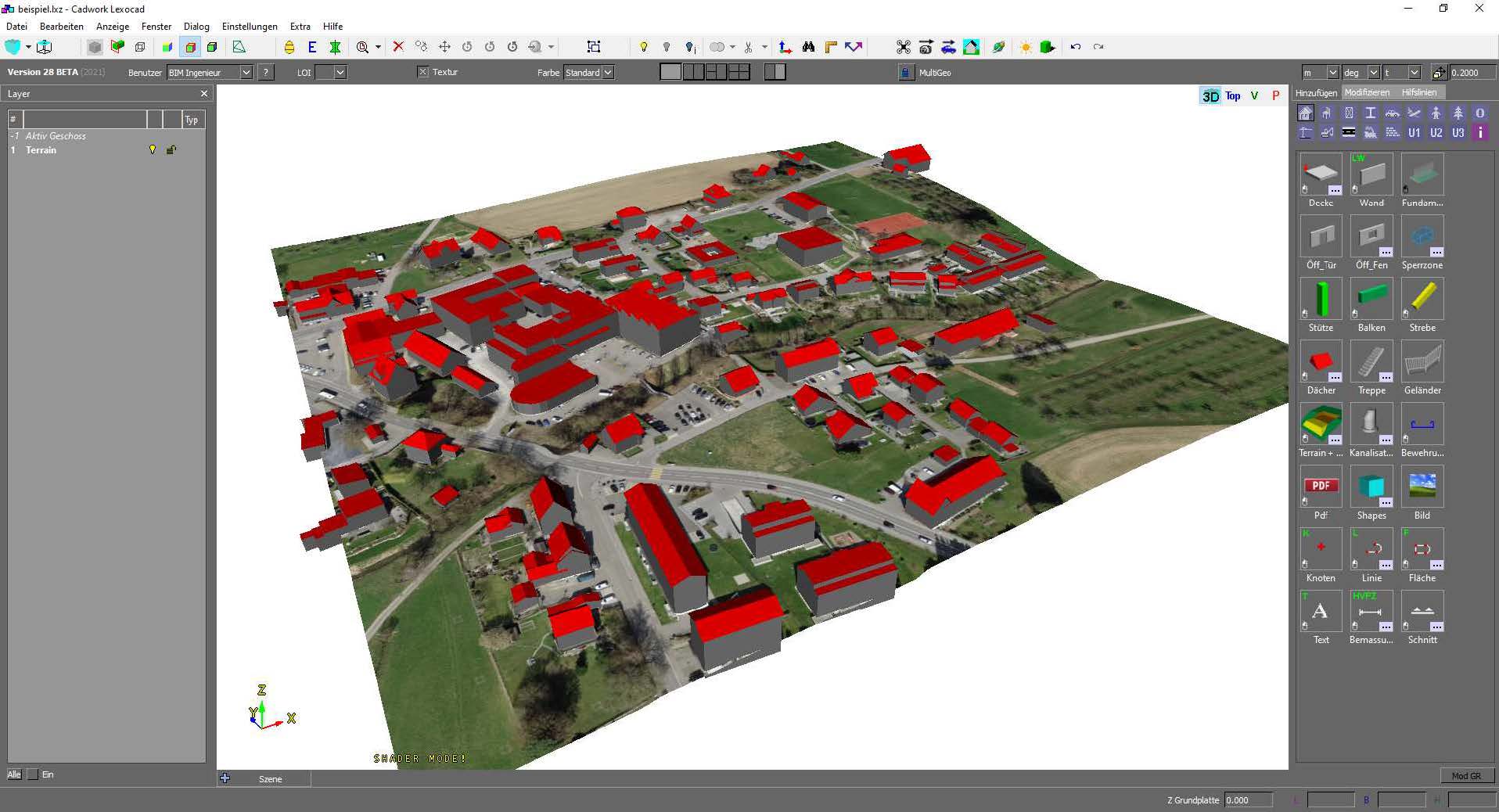 Further modifications of the 3D data in lexocad as well as the use in 2D grundmodul and 2DR strasse is possible.
